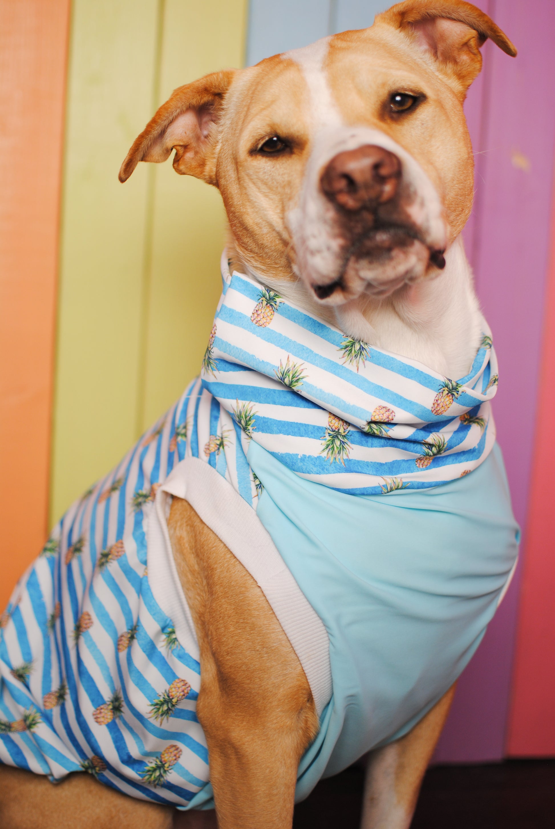 SPF 50 blue stripes and pineapples size large tank top